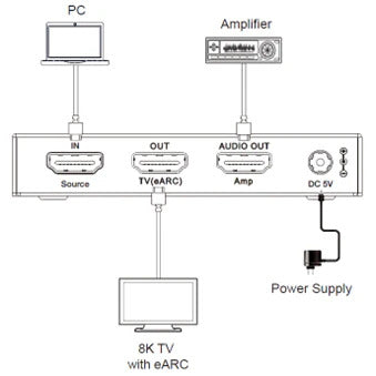 - Without eARC support : Older amplifiers that do not support eARC can work with modern TVs thanks to this device.