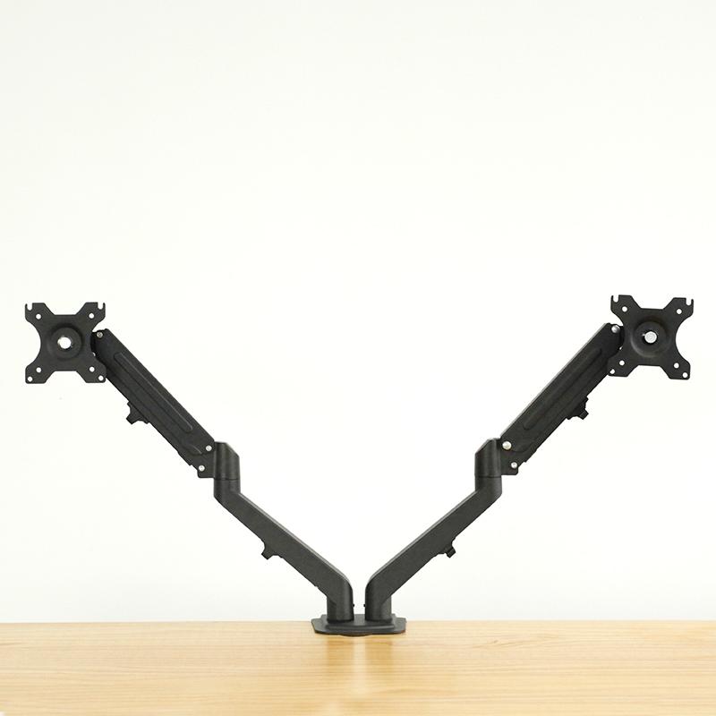 A practical and flexible monitor bracket with gas spring for two monitors. It fits screen sizes 17 "-27". The material is aluminum and steel. The color is black and matte.