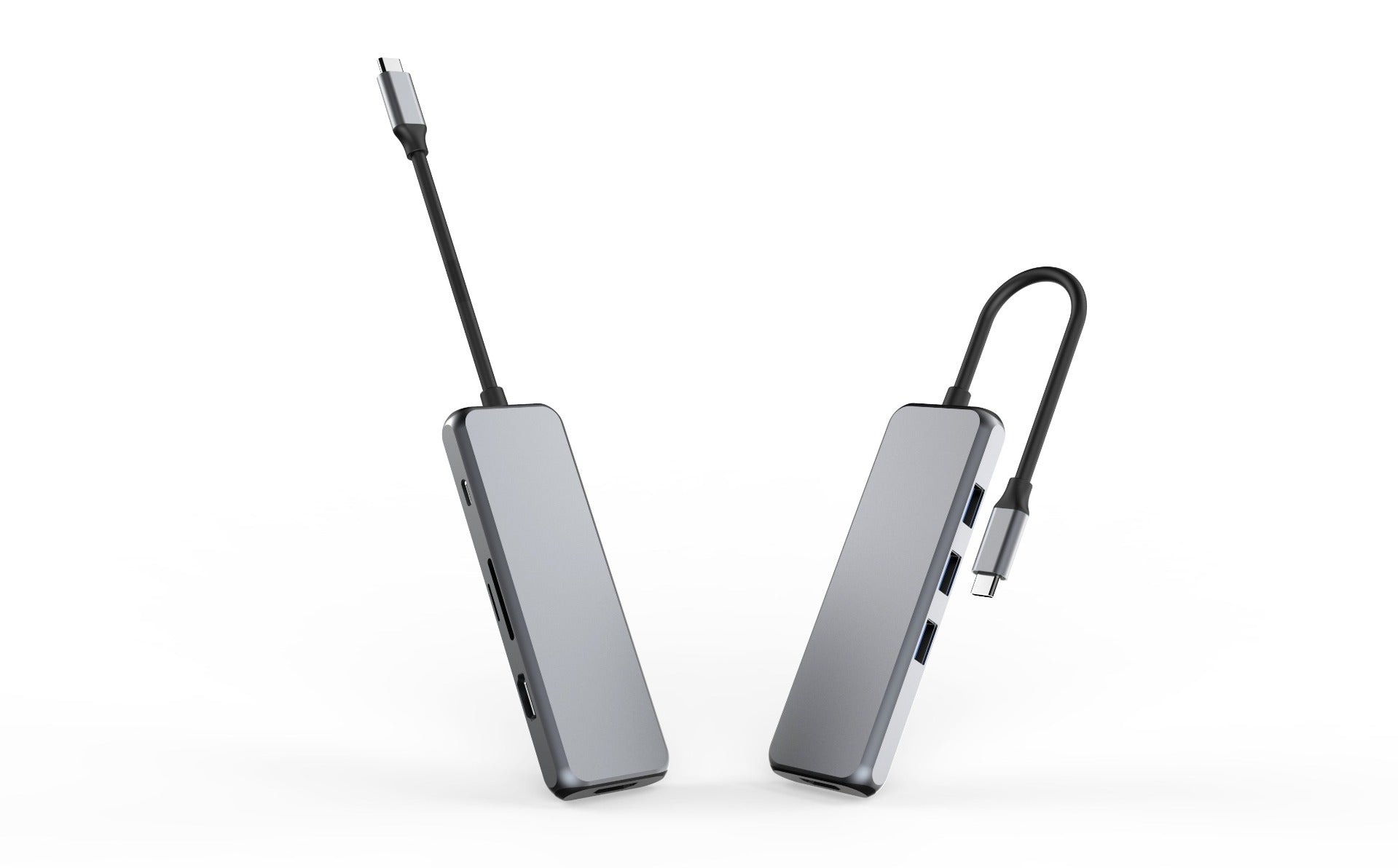 This 1 to 8 docking station from NÖRDIC converts the USB-C or Thunderbolt port in your computer to 8 ports including 1xHDMI 4K 60Hz, 1xHDMI 4K 30Hz 1x USB C Power Delivery 87W, 3x USB A 3.1 5Gbps and 1xSD/Micro SD card reader.