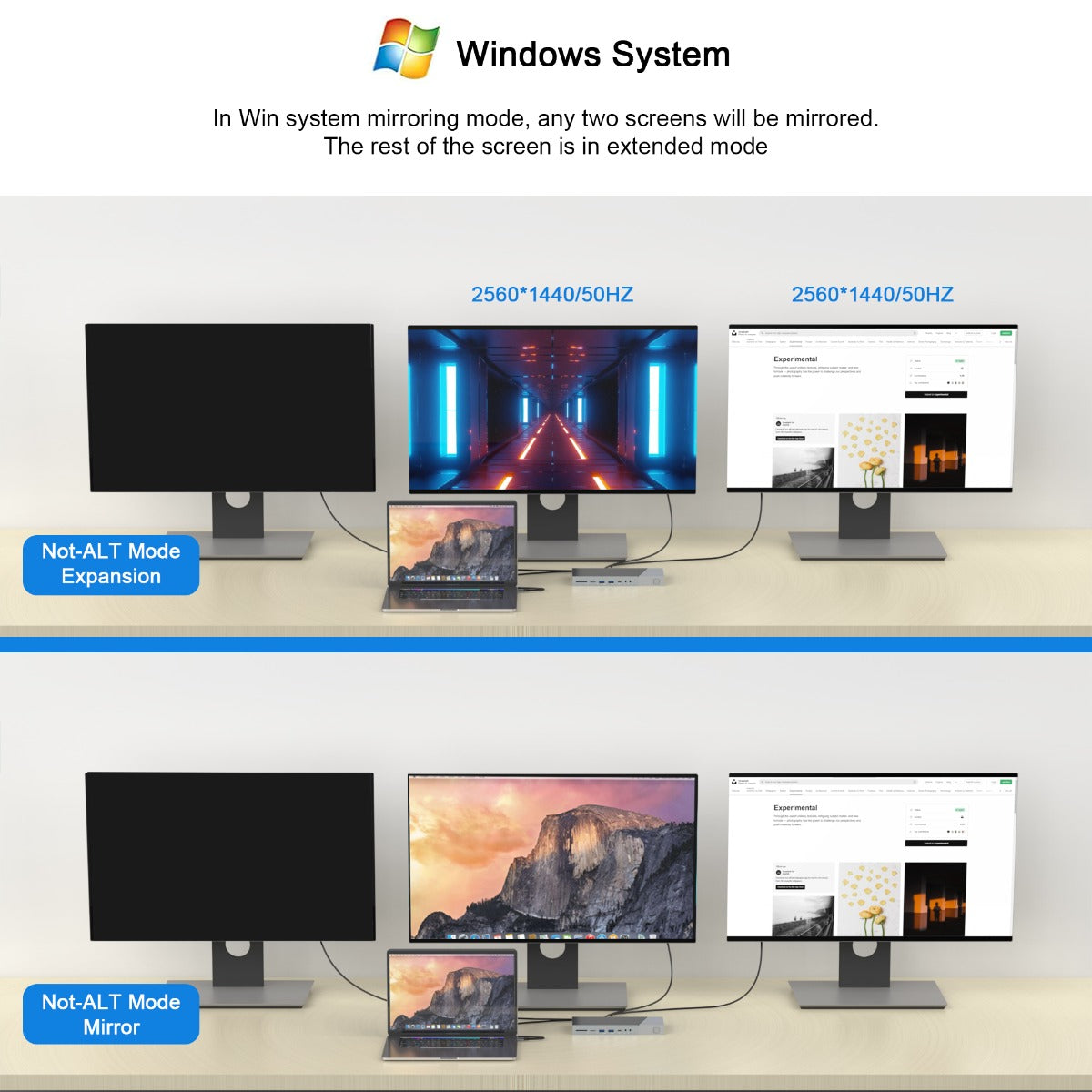 It is possible to connect three external monitors to the computer (4 monitors in total including your computer's monitor) via 3xHDMI ports on the dock. The docking station supports MST, which means you can mirror or extend up to three external monitors. For more information, see the photos. The MST function is applicable to both Windows and Mac, including Mac M1 and M2. The docking station is suitable for 5K 60Hz (5120x2880), but only for an external monitor.