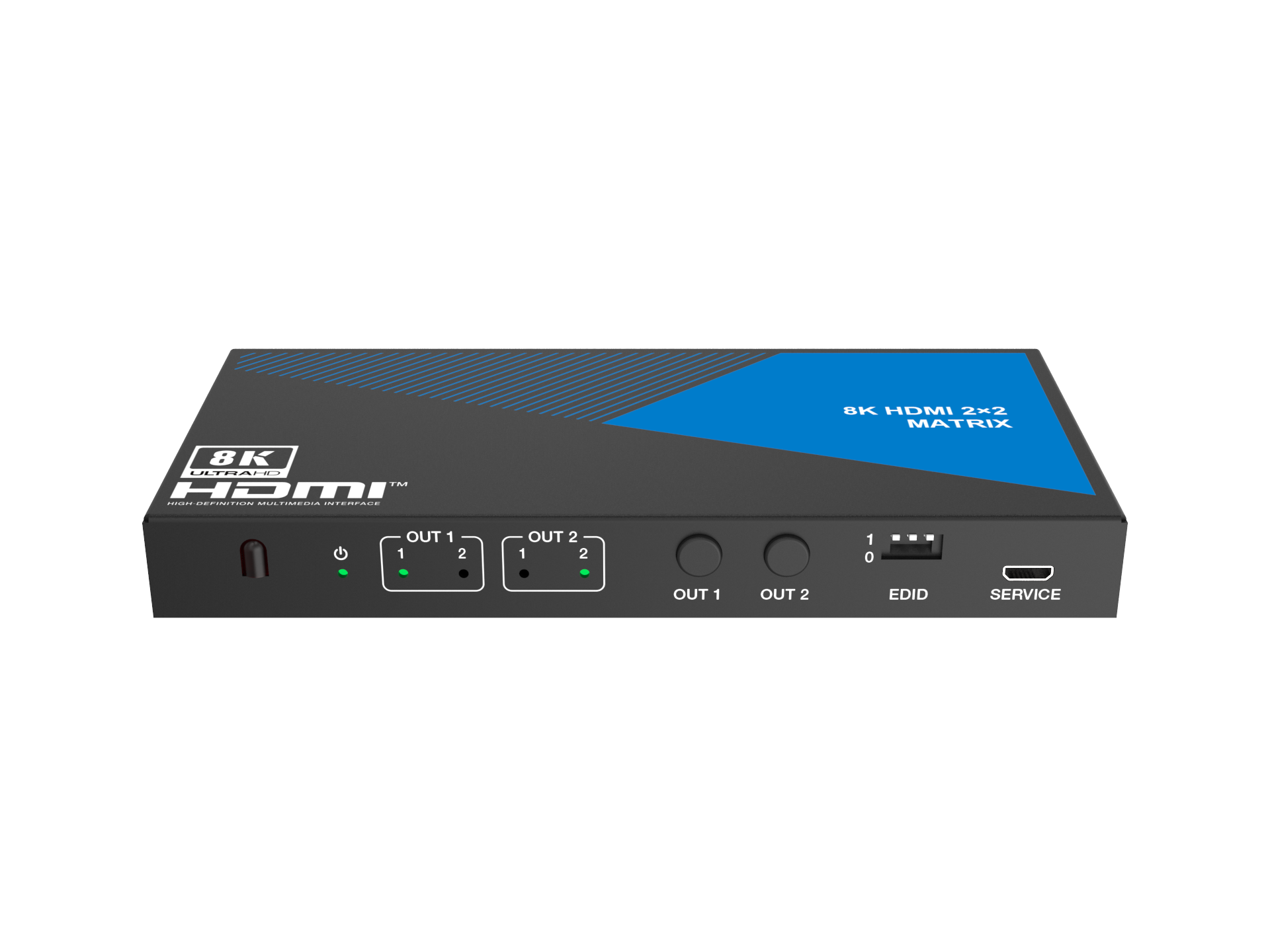 - 2x2 Matrix Switch – Verbind twee HDMI-bronnen met twee HDMI-schermen en kies per scherm welke bron wordt weergegeven.