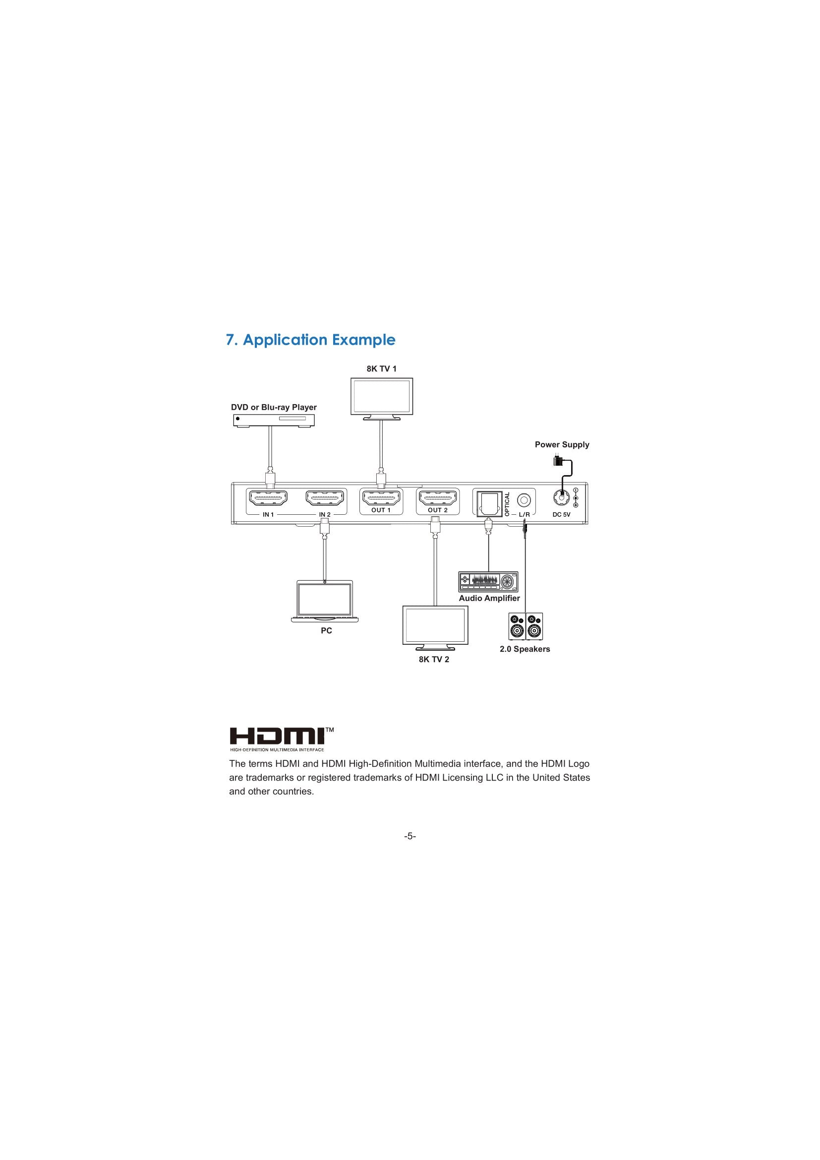 - Ingangen: 2x HDMI 2.1, 1x DC 5V2A