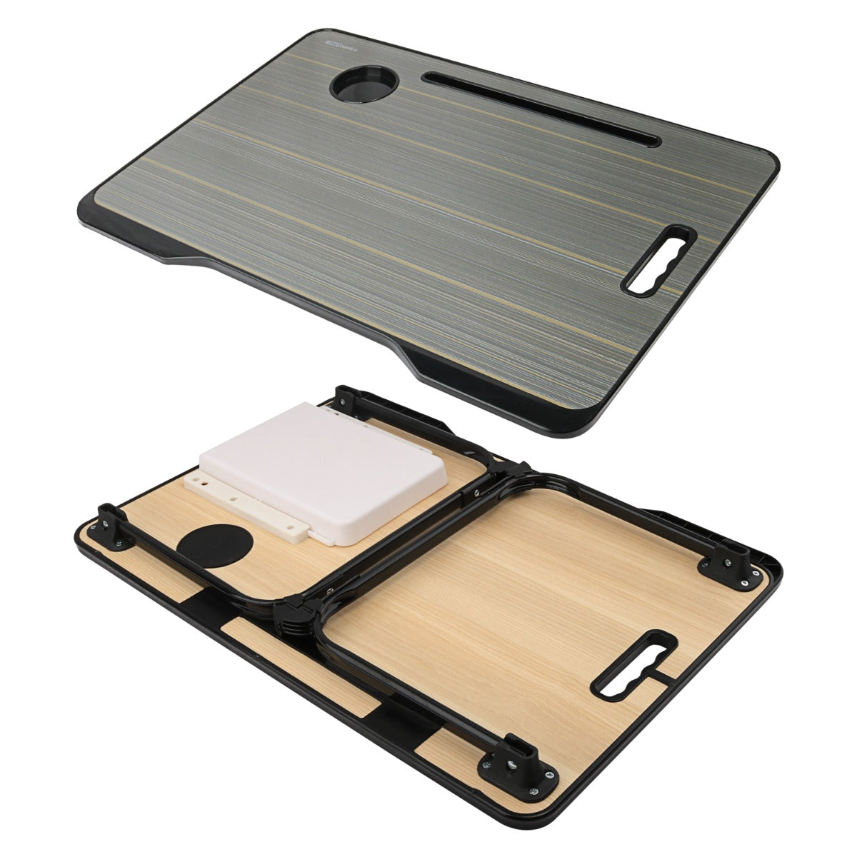 But that’s not all. This clever folding table is designed with your needs in mind. Thanks to the pull-out storage drawer, you can keep all your essentials neatly organised, from accessories to documents. And with the built-in cup holder, you can enjoy your favourite drink while you work, without the risk of spilling it on your laptop.
