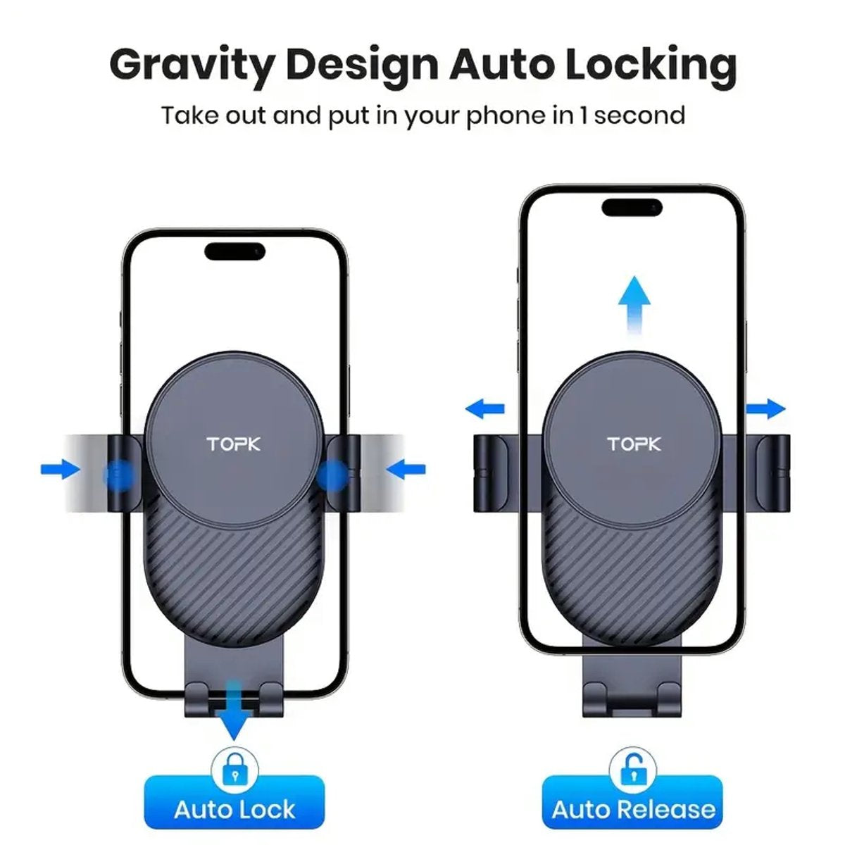 De TOPK telefoonhouder is jouw slimme oplossing om je smartphone binnen handbereik te houden terwijl je onderweg bent. Dankzij de eenvoudige en stevige bevestiging aan de ventilatieroosters van je auto blijft jouw telefoon veilig en gemakkelijk toegankelijk