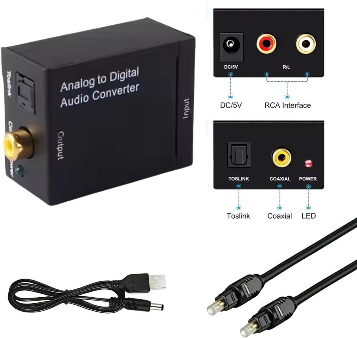 De Delmark analoog naar digitaal audio converter is de perfecte oplossing om klassieke audiobronnen met RCA-uitgang aan te sluiten op moderne digitale audioapparatuur. Zet moeiteloos analoog stereo-audio om naar helder digitaal geluid via Toslink (optisch) of coaxiale SPDIF – zonder kwaliteitsverlies.