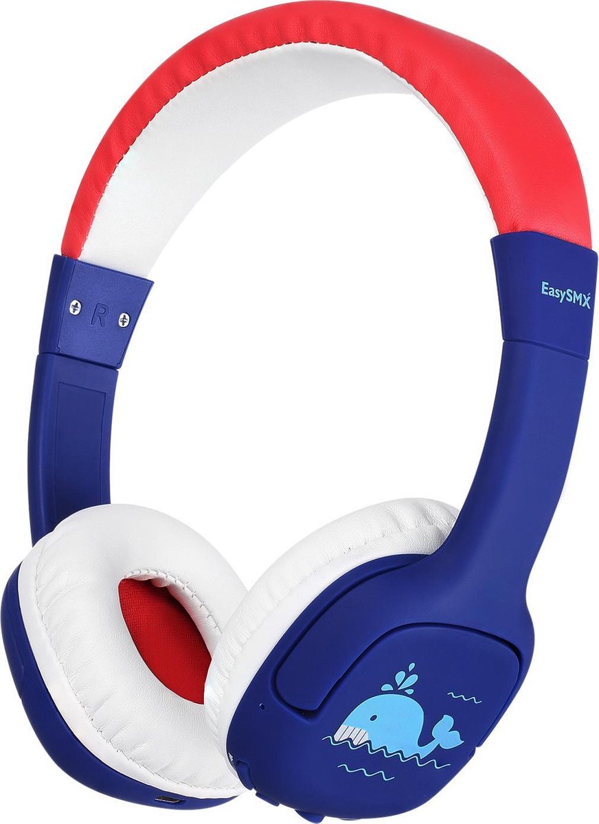 EasySMX EC-C004, Bluetooth headset voor kinderen met volumeschakeling, 3.5 mm jack, donkerblauw/ rood