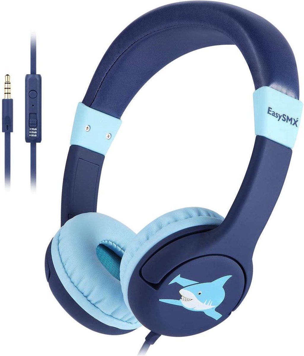 EasySMX KM-SHARK, Koptelefoon voor kinderen met volumebegrenzing, hoofdtelefoon voor iPod, iPad, iPhone, Android en mobiele telefoons, Blauw