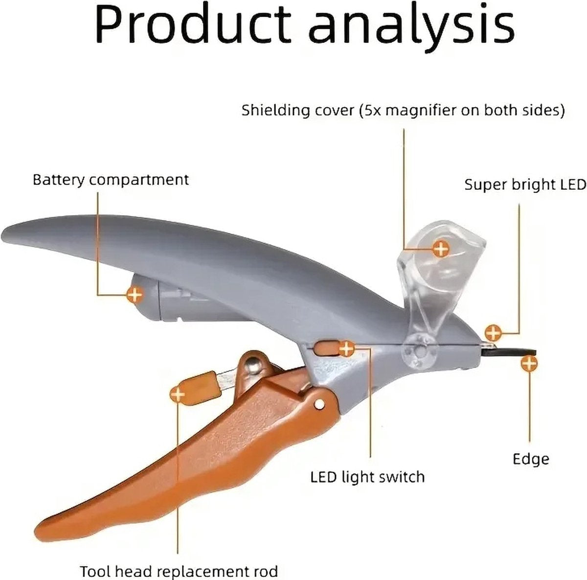 Deze nagelknipper is voorzien van een LED-lampje waardoor je de nagel van jouw huisdier veel beter kunt zien. Hierdoor kan de nagel, snel en veilig op de juiste lengte worden afgeknipt. Met de uitklapbare nagelvijl kunnen de geknipte nagels mooi rond worden gevijld. De nagels zullen tijdens het knippen worden opgevangen in het handige opvangbakje die aan de nagelknipper bevestigd zit.