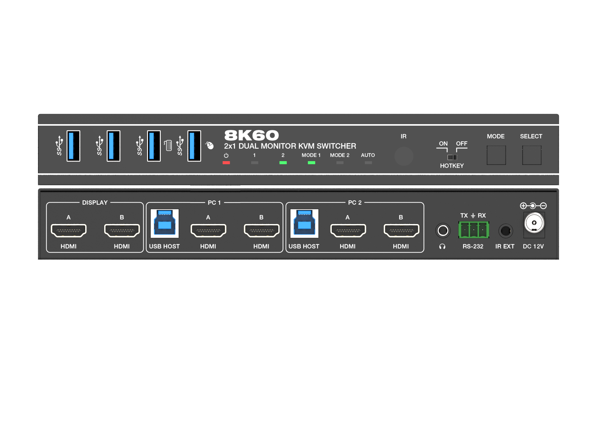 - Naadloze controle: Wissel eenvoudig tussen computers met knoppen, sneltoetsen of IR-afstandsbediening.