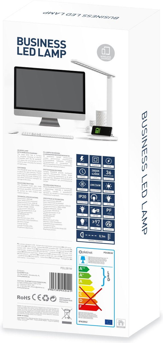 Platinet PDL081W LED Bureaulamp met ingebouwde draadloze QI oplader wit