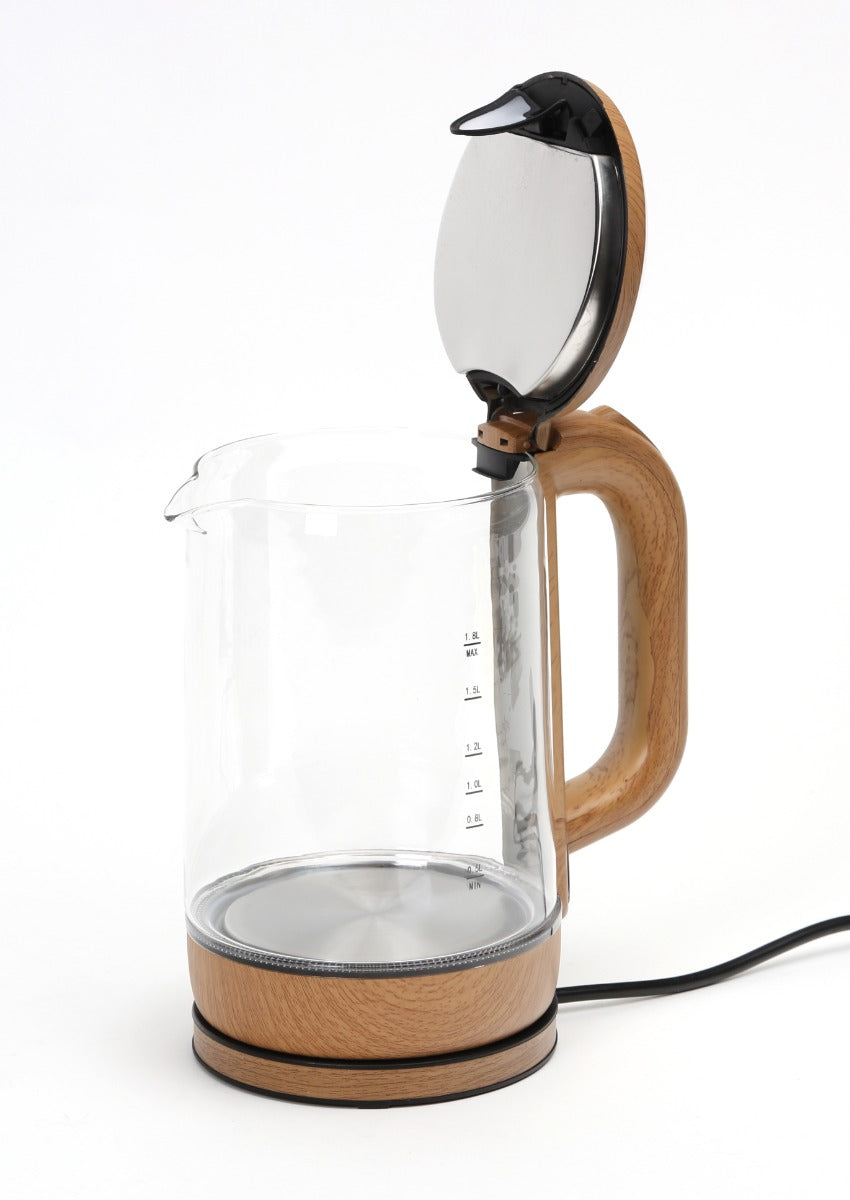 De waterkoker biedt gemakkelijke toegang tot de glazen kan, die gemakkelijk te spoelen en schoon te maken is.