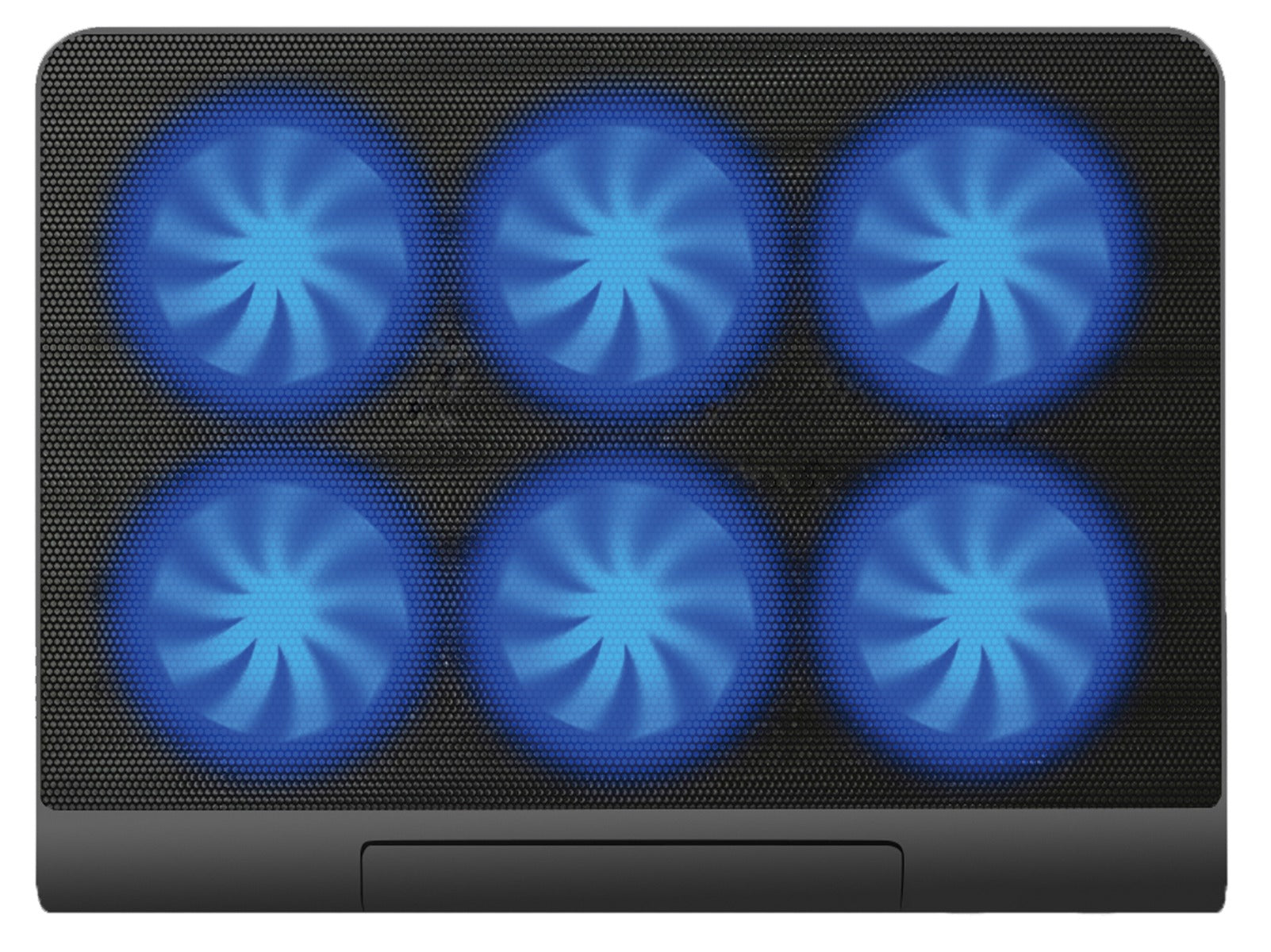 De laptopkoeler is zeer geschikt voor gebruik met 10-17.3" laptops. Het is uitgerust met vijf stille ventilatoren die de oververhitte laptop verzacht. Het heeft een effectieve LED-achtergrondverlichting en twee USB-poorten .