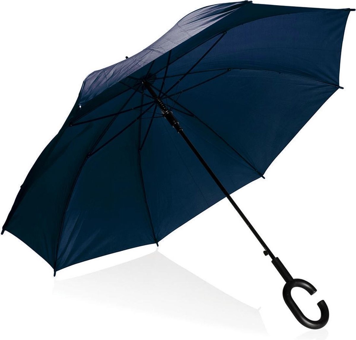 PLATINET PLUCHBL Paraplu met C handvat semi-automatisch polyester donker-blauw