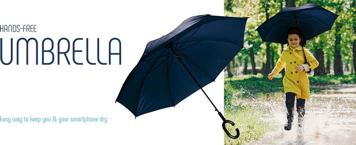 De paraplu is voorzien van een handvat in C-vorm dat u gemakkelijk om uw pols wikkelt terwijl u uw hand vrij houdt.